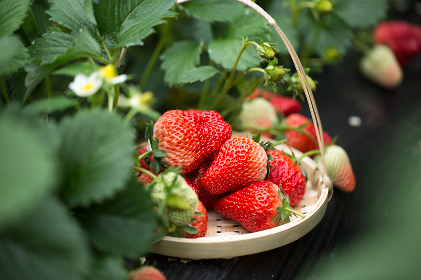 每年夏天,海天一色的蓝,将东港渲染出滨海独有的温润与清新,冬日,这里则浸没在一片99草莓的红色海洋之中。